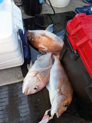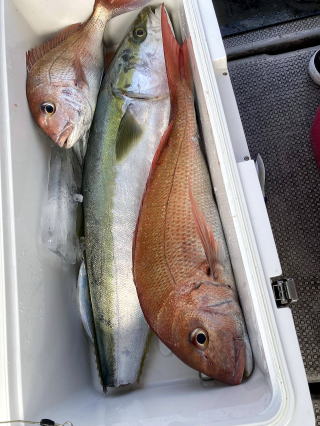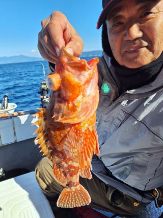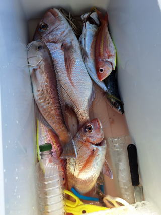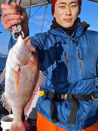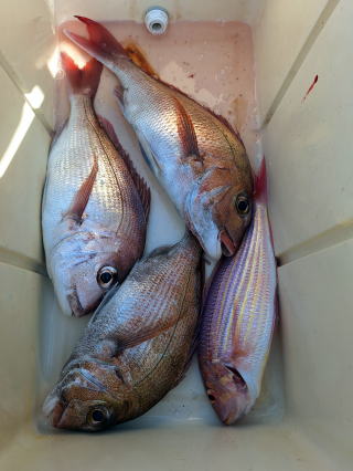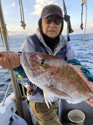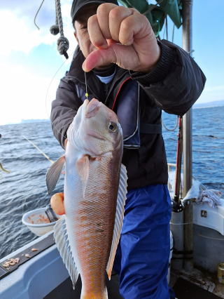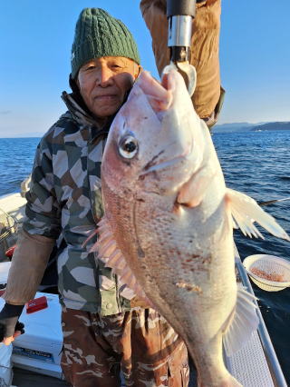 2026/01/09コマセマダイ 又、前日にちょっとした地震があり心配でしたが、 案の定、魚は食いが渋く中々当たりませんでしたが 西村氏が頑張り、マダイ4枚ゲットアマダイ2本と 日頃いつも抜かれている岸良氏を出し抜きました。 おまけに帰港してから去年落とした錨も見つけて頂き、 ひとしきりに感謝、雨、霰でありがとうございました これでやっと”すずらん”も正月を迎えられました。 西村氏に足を向けて寝むれません ![]() ![]() ![]() :::::::::::::::::::::::::::::::::::::::::::::::::::::::::::::::::::::::::: 2026/01/04コマセマダイ 昼から時化るため11時半迄の約束での出港でした。 1投目からアマダイが。しかし、下げ潮に変われど潮が 一向に動かず、時間は迫るし海は荒れてくるしどうしたものか と思っていたらやっと動き出し皆さんに当たりが。アマダイ含め 20枚程の釣果。時化の中やっと帰港しました。 坪山氏、アマダイ2本他マダイ、イノコ ![]() 飯伏の銀ちゃん調子良く ![]() 徳田氏、調子よく7枚、イノコ1 ![]() ![]() ![]() ::::::::::::::::::::::::::::::::::::::::::::::::::::::::::::::::::::::::::::::::::::: 2025/12/30釣り納め6便目 釣り納めにはちょっと風が足りないかナァーという感じで 出ましたが、沖の方はなかなか。朝のうちの下げ潮は 動きが悪く、勝負は上げ潮で。アマダイ含む皆で30枚程 の釣果。若潮にしては上出来でしょう。 村山氏、2番目に釣り上げ ジンクスどうりに絶好調 ![]() 出水氏、潮上で後、がんばりました。 ![]() 良型が釣れた為写真の取り直し ![]() ![]() ミヨシに居たため良型に恵まれず ![]() 本日2本目の外道のアマダイ ![]() ![]() 血抜きする暇もなく ![]() ::::::::::::::::::::::::::::::::::::::::::::::::::::::::::::::::::::::::: 2025/12/29コマセマダイ 上げ潮の1日でしたが、そこそこに潮は動いてくれました。 根占沖で5枚程。相変わらずアジが邪魔をしてくれましました。 ポイントを変えたらデカアラカブ、アマダイにマダイと 多種多様な魚種が上がり、賑やかな年越しの1日でした。 ![]() ![]() ![]() ![]() ![]() ![]() ::::::::::::::::::::::::::::::::::::::::::::::::::::::::::::::::::::::::: 2025/12/28コマセマダイ 長潮前の小潮。あまり期待はしてなかったけど、 それなりに答えてくれました。小ぶりが多かったが とりあえず10枚越え。あまりに食いが悪いので 落とし込みのポイントに。ベイトには当たるけど それに1度も当たり無し。仕方なく納竿。 いつもの常連さん相変わらず ![]() 前回の竿頭、今日も? ![]() タツヤ君、札幌から錦江町の奥さんの実家に。 マダイ3枚に、他etcに満面の笑顔 ![]() 最初の当たりがもったいなかった ![]() 今夜の飲ん方用に4枚。他etc ![]() :::::::::::::::::::::::::::::::::::::::::::::::::::::::::::::::::::::::::::::::::::::::::::::::::::::::::::::::::::::::::::::::::::::::::::::::::::::::::: 2025/12/23コマセマダイ 予想外に風が強く、時化てきました。満ち潮で 何とか数枚ゲット。下げ潮になる前に風裏へ移動。 今日は幸いにサバフグも出ず何とか釣りになりました。 井上女史、コツを掴んだか次々と当たりが。他の同僚も 真似をしてやっと当たりだしました。おまけに柿木氏は 良型の白アマダイをゲット。井上女史も最後に赤アマダイと デカいイトヨリダイをWヒット。皆でマダイ20枚程の釣果。 ![]() ![]() 井上女史、3㌔弱の良型のマダイにそれを神経締め中 ![]() ![]() 柿木氏良型の白アマダイを ![]() 最後のイトヨリダイが威張ってます。 多彩な魚種の中で白アマダイが ![]() ![]() ::::::::::::::::::::::::::::::::::::::::::::::::::::::::::::::::::::::::: 2025/12/20コマセマダイ 潮の流れが悪くマダイにコマセが効きません。 仕方なく船を瀬際に付けてみるとアジは釣れるけど ブリなど青物も食いつきません。その中で高峰氏に 凄い当たりが。やっと上げたら3㌔もある星カツオ。 こんな大きい星カツオは初めてでした。 ![]() ![]() ::::::::::::::::::::::::::::::::::::::::::::::::::::::::::::::::::::::::: 2025/12/19コマセマダイ 久々に3キロを拝ませていただきました。 潮の流れが悪く今日はどうかな~と一人で心配してましたが 直ぐ当たりがあり上げてみてビックリ。後、すぐ畑野氏に 当たりが。上がって来ると青物だと分かり、皆に仕掛けを 上げてもらい取り込みました。7㌔のブリ、ゲット。 あとはちょぼちょぼで.13時の潮止まりで納竿でした。 松崎氏久々の3㌔に喜びもひとしお ![]() ![]() 畑野氏、最近運動不足か 7㌔が重たいと ![]() ![]() ::::::::::::::::::::::::::::::::::::::::::::::::::::::::::::::::::::::::::::::::::::: 2025/12/10サバフグ調査 最近サバフグによる高切れが多く発生。皆さん泣いて. おられます。”この前巻きなおしたばっかりなのに”という 事で調査に行ってみました。幸いに1回も切られることなく 2時間程でマダイは3枚ゲット。もう大丈夫かな?と言う感じでした。 ![]() :::::::::::::::::::::::::::::::::::::::::::::::::::::::::::::::::::::::: 2025/12/06落とし込み サビキを入れて当たりを待つが昨日と違い潮が動かなく ベイトが付かない。水温が1日でだいぶ下がりおそらく。 魚影はあるが口を使わない原因だ。おまけにサバフグ だけは元気で困ったもん