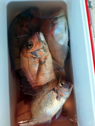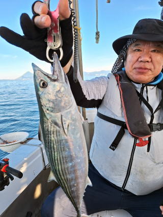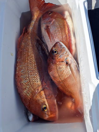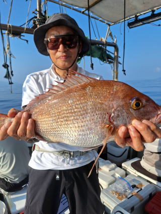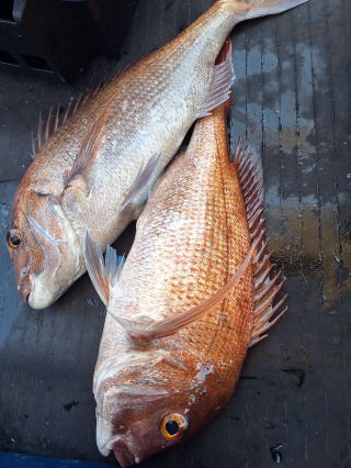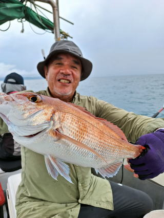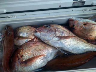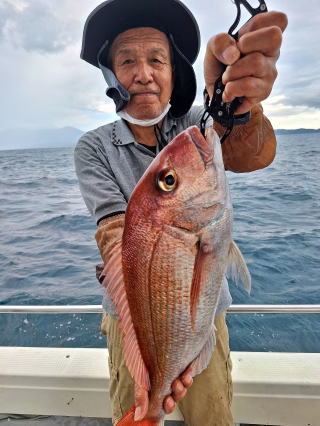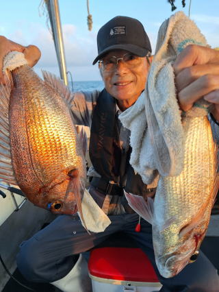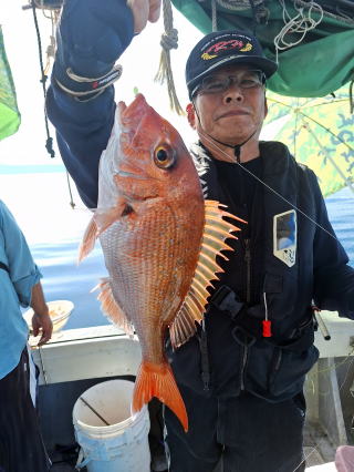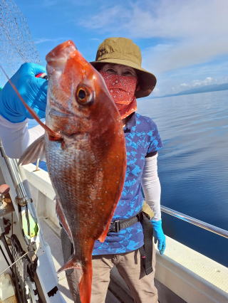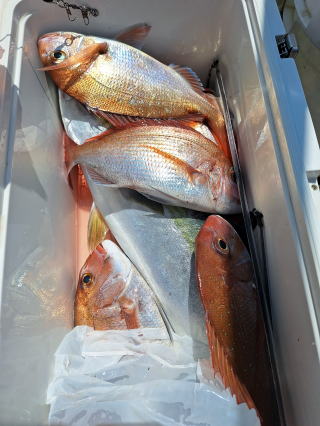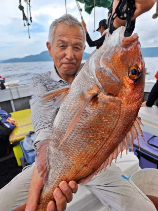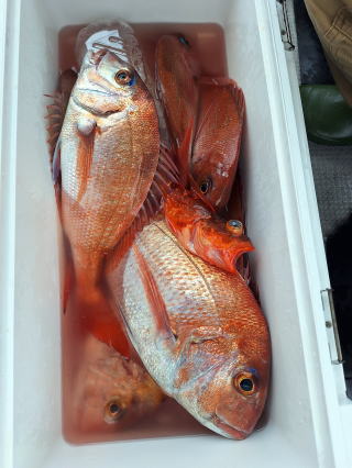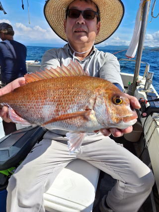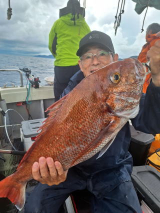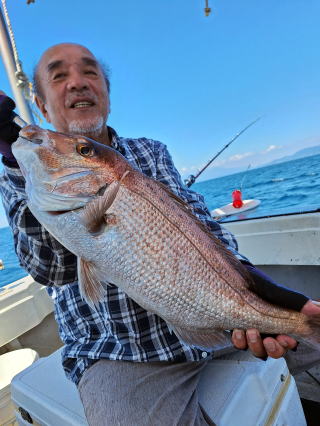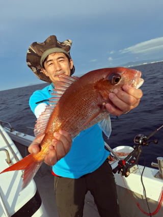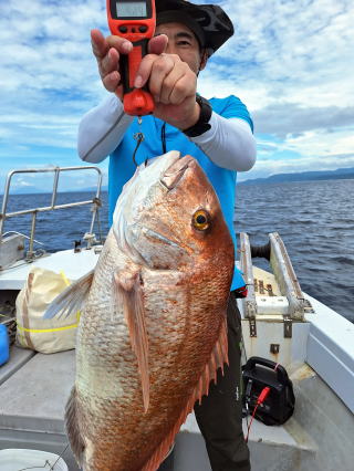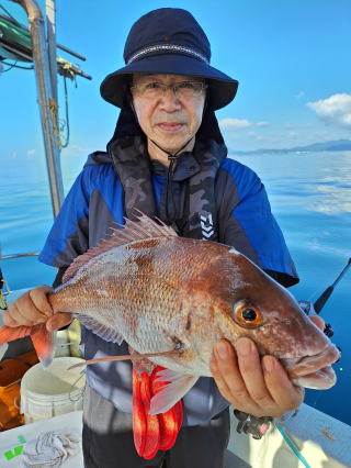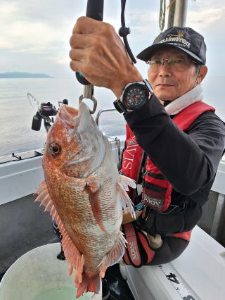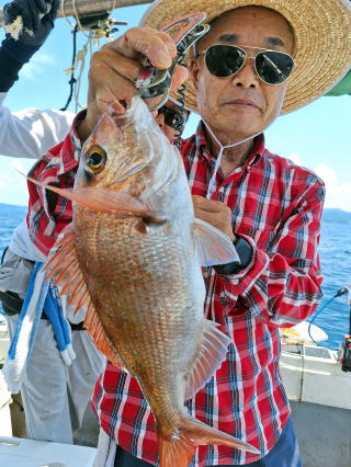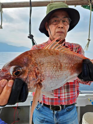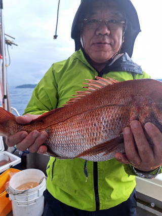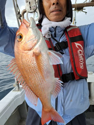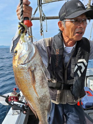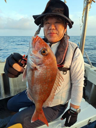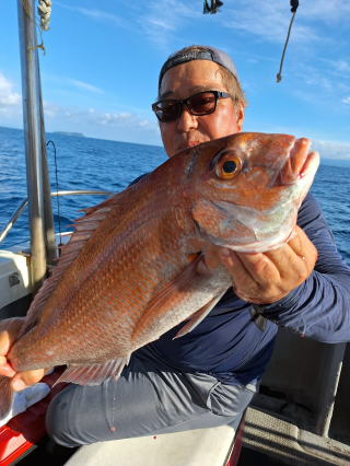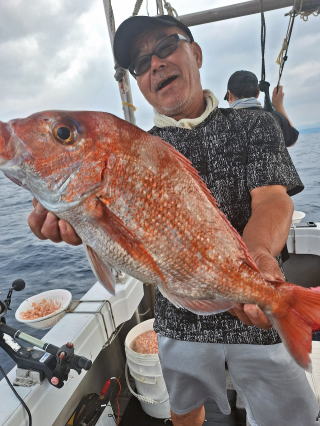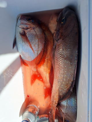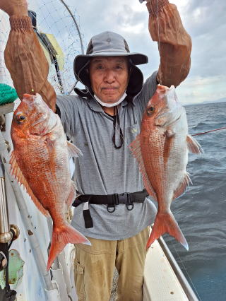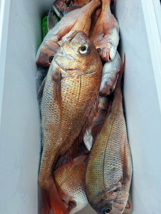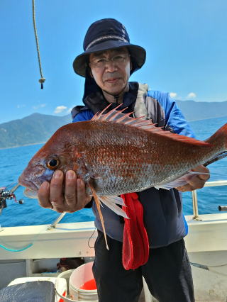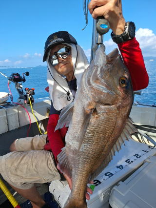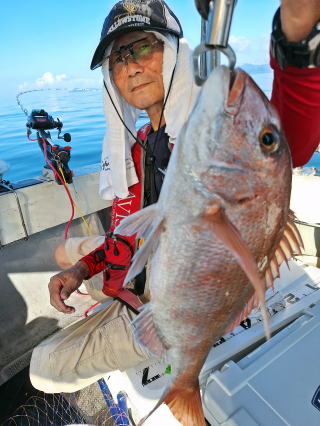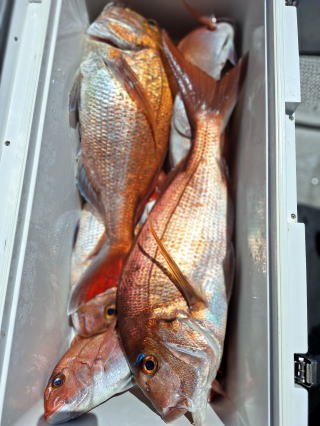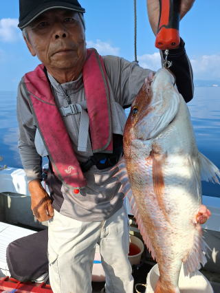 2025/10/05コマセマダイ ネットを見て光川さんがお孫さんを連れて宮崎から遊びに 来てくださいました。毎日更新している甲斐がありますね。 昨日がまずまずだったので、今日はなかなか厳しい状況 でしたが、皆それなりに釣果はありました。4枚~6枚で 5人で22~23枚程。デカ版は原山氏が4㌔オーバーかと 思われましたがちょっと足らずでした。 ![]() ![]() 4㌔にちょっと足らず ![]() ![]() ![]() ![]() 2025/10/04コマセマダイ 昨日と同じく上潮は速いが底は帰ってくる、昨日と 一緒かと思ったが段々底潮が動き出しポツポツと 釣れだしました。デカ版こそ出なったが良型が それなりに上がり3㌔前後も数枚。竿頭の岸良氏は 10枚。他4人は6~8枚程。皆で40枚程でした。 ![]() ![]() ![]() ![]() ![]() ![]() ![]() 2025/10/03コマセマダイ 若潮の次の中潮。いつもはそんなに感じないけど 今日は上潮は速く流れてるけど底に着くと戻って きて動きがないせいか釣れません。1投目でハタが 釣れたのがつかの間の喜びでした。あとは大浦氏 に4㌔が釣れたのが唯一の慰め。あしたは釣れそう。 ![]() ほぼ4㌔唯一の慰め ![]() ![]() 2025/9/29ジギング&タイラバ 湾口からのうねりが結構キツカったけど皆さん頑張り ました。マダイもポツポツ釣れてオオモンハタが釣れだし だんだん良型も。そしてカンパチも1本。潮代わりから 当たりもなくなったので1時で納竿皆で16枚程の釣果。 ![]() ![]() ![]() ![]() ![]() ![]() 2025/9/27コマセマダイ 寝坊助のお陰で1時間程遅れての出港。ポイントに 向かってると何かが跳ねているのが見える。 潮代わりから潮が動かないものだからチョロ釣りを 始めたら何かが掛かって上げたらヨコワでした。 周りを見るとヨコワがあちこちで跳ねてました。 皆天秤を外してチョロ釣りに交換。しかしそうは問屋が 下ろしません。マダイは皆で11枚。今年は 何か期待が持てそうです ![]() ![]() ![]() ![]() 2025/9/27 潮の流れも風の流れもゆる~い1日でした。 陽射しだけは相変わらず強く、水分を補給しながら ポツポツと1匹ずつ拾い上げて、何とか船中20枚程は 確保。しかし、デカバンはでず、良型が数枚程度。 やっぱり潮の流れ、大事ですね。 嬉しい外道が ![]() ![]() ![]() 竿頭のクーラーは賑やかでした ![]() 2025/9/23コマセマダイ ポイントに着くや否や1投目から食べごろサイズが 二人に同時ヒット。さい先の良いスタートでした。 後もポツポツと上がりますが、8時の潮代わりから 潮が動かずジッと我慢。動き出してからミヨシにいた 松島氏に6㌔弱が。これを筆頭にバタバタと皆にも 松島氏竿頭の12枚。他の4人が18枚。皆で30枚程。 帰港してから下ろすのが一苦労でした。 1投目から二人してWヒット ![]() ![]() そして、3キロ弱の良型も ![]() 喜多氏にもキターーーー ![]() ポーズが決まらず重たそうな松島氏 ![]() ![]() デカ版が威張っています ![]() 2025/9/20コマセマダイ 風は吹かず、潮は流れず、ポイントはクルクル変わり その度にアンカーの打ち直し。5~6回はやり直したでしょう でも、やり直すたびに釣れてくれるから嬉しいですね。 12時位から予報通り時化てきましたので納竿。 船中20枚程の釣果。良型ばかりでした。 中村氏、親子対決。4,1㌔で父に軍配 Facebookに動画を掲載してあります。 ![]() ![]() ![]() ![]() ![]() 2025/9/19アマダイ 午前中アマダイ狙いで出ました。朝にはそこそこ 風が吹いてくれましたが途中から風もやみ潮も 動きが悪く、食いが止まる時もありエンジンで 動かしたりちょっと苦労しましたが、皆さん4~5枚 の釣果でした ![]() ![]() ![]() ![]() ![]() 2025/9/13 今日も午前中だけ、それも11時には陸に上がらないと 風が強くなる予報で、4時間の勝負でした。 4人それぞれ5~6枚の釣果。 暑くなる前に.上がるこれが一番 2人して1投目から ![]() ![]() ![]() ![]() ![]() ![]() 2025/09/10コマセマダイ 昨日の朝迄の予報では、今日は最高の釣り日和の 予定でしたが、朝になったら9時過ぎ頃から雷雨の 予報に変わっていたので、3時間の勝負だなと。 千葉から遊びに来ている斉藤氏に何としても土産を 持たして上げないといけないので必死でした。 でも、その甲斐あってか土産が1人5~6枚位ずつ 船中15~16枚程の釣果でした。 帰りのときのゲリラ雷雨、稲光、あちこちですごかったです 大浦氏、1投目から3㌔を ![]() 斉藤氏、これで千葉に帰れると ![]() 本田氏、カメラに入りきらない程 ![]() 30㌔位のクーラーボックス 重 ![]() 2025/09/08コマセマダイ 一昨日が釣れすぎたせいか昨日がまるでダメでした。 代わりに今日は出だしから3㌔が。後も次々と。 2時間程で15枚程。10時頃から潮がおかしくなり ポイントも大きくずれだし2枚潮に。もう十分ですと 言われて11時には納竿でした。でも暑いです対策を。 朝一から3㌔を ![]() 神経締めする暇もなく ![]() ![]() ![]() 2025/9/06コマセマダイ 台風で水温もちょっとは下がっただろうと根占沖に 行ってみました。糸を垂らしてみると良型に始まり 2㌔~3㌔が次々と。食いが立ってる時は血抜きも する暇もないくらい忙しい時もありました。船中で 30枚程。