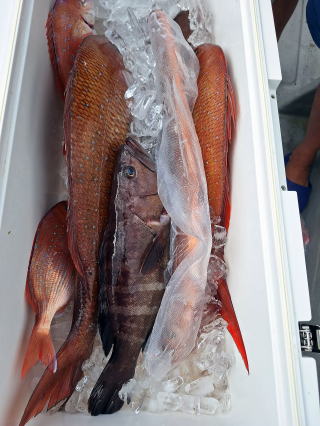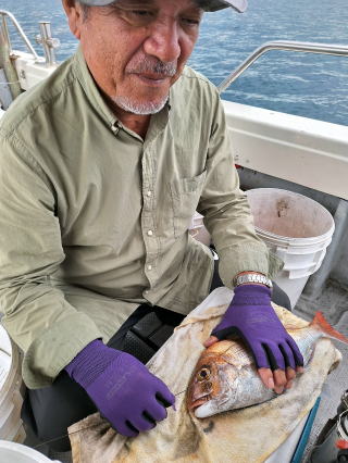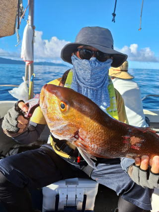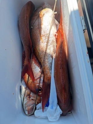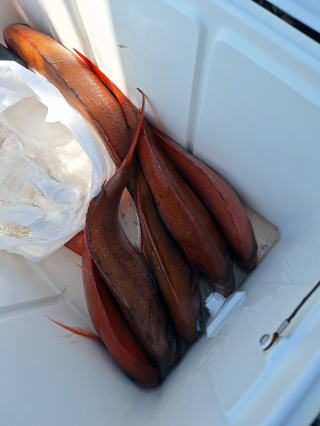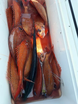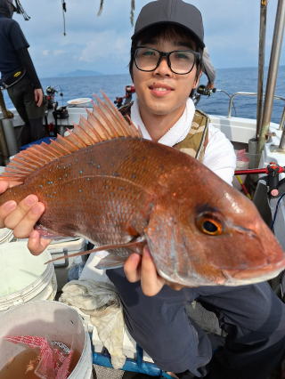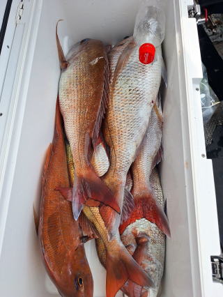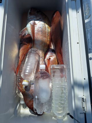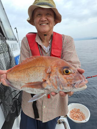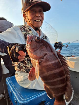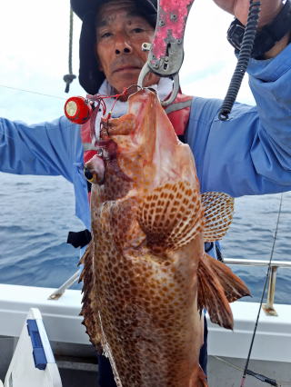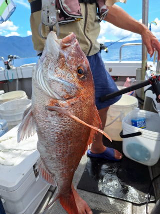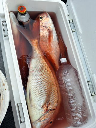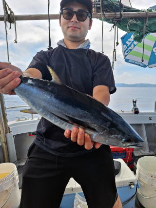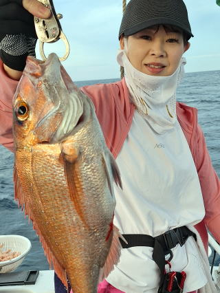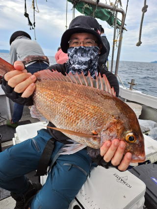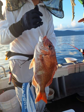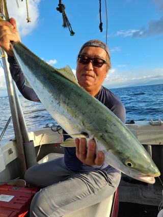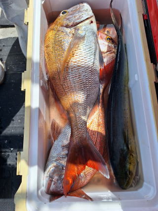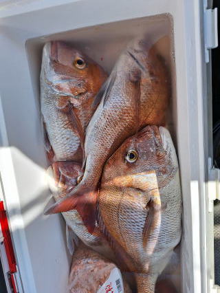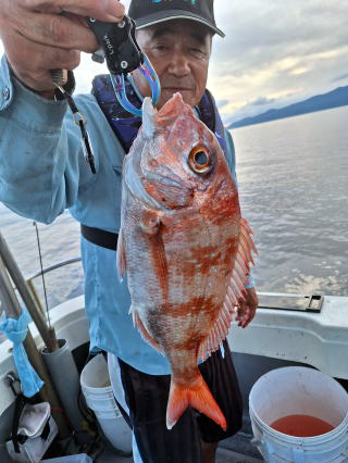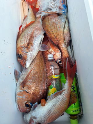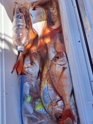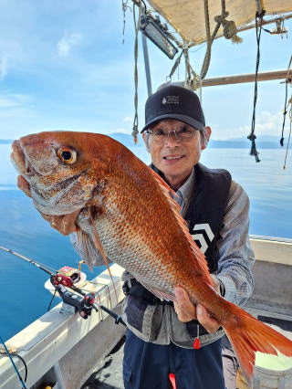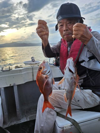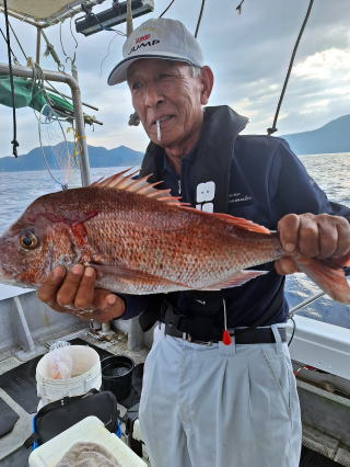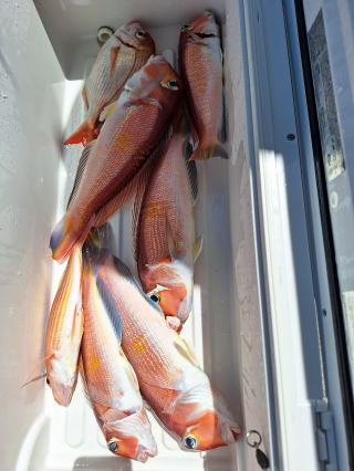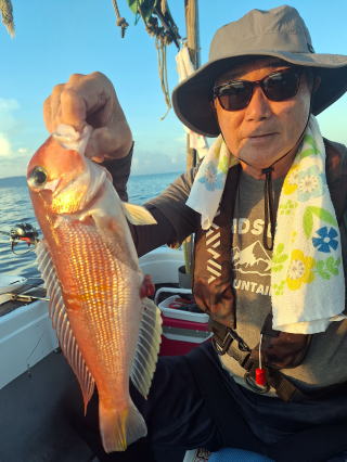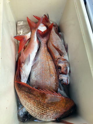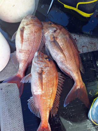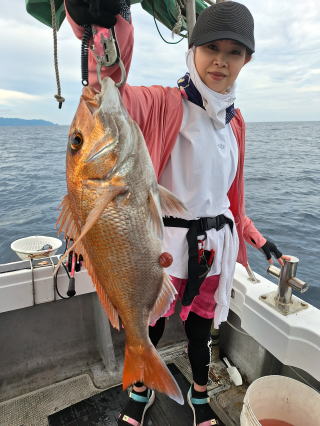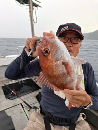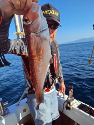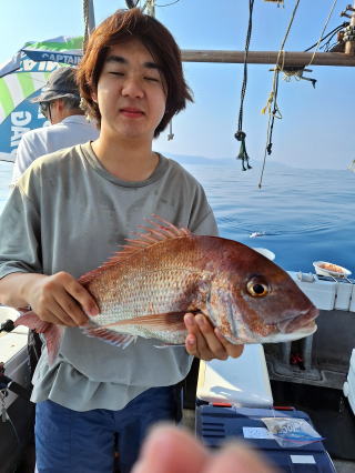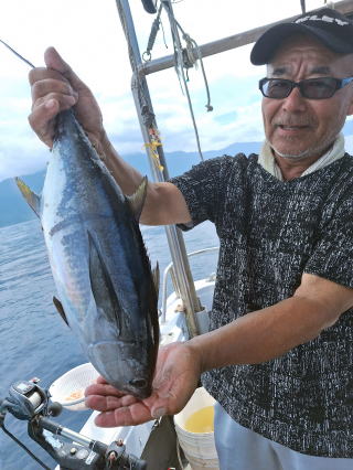 2025/10/05コマセマダイ ネットを見て光川さんがお孫さんを連れて宮崎から遊びに 来てくださいました。毎日更新している甲斐がありますね。 昨日がまずまずだったので、今日はなかなか厳しい状況 でしたが、皆それなりに釣果はありました。4枚~6枚で 5人で22~23枚程。デカ版は原山氏が4㌔オーバーかと 思われましたがちょっと足らずでした。 ![]() ![]() 4㌔にちょっと足らず ![]() ![]() ![]() ![]() 2025/10/04コマセマダイ 昨日と同じく上潮は速いが底は帰ってくる、昨日と 一緒かと思ったが段々底潮が動き出しポツポツと 釣れだしました。デカ版こそ出なったが良型が それなりに上がり3㌔前後も数枚。竿頭の岸良氏は 10枚。他4人は6~8枚程。皆で40枚程でした。 ![]() ![]() ![]() ![]() ![]() ![]() ![]() 2025/10/03コマセマダイ 若潮の次の中潮。いつもはそんなに感じないけど 今日は上潮は速く流れてるけど底に着くと戻って きて動きがないせいか釣れません。1投目でハタが 釣れたのがつかの間の喜びでした。あとは大浦氏 に4㌔が釣れたのが唯一の慰め。あしたは釣れそう。 ![]() ほぼ4㌔唯一の慰め ![]() ![]() 2025/9/29ジギング&タイラバ 湾口からのうねりが結構キツカったけど皆さん頑張り ました。マダイもポツポツ釣れてオオモンハタが釣れだし だんだん良型も。そしてカンパチも1本。潮代わりから 当たりもなくなったので1時で納竿皆で16枚程の釣果。 ![]() ![]() ![]() ![]() ![]() ![]() 2025/9/27コマセマダイ 寝坊助のお陰で1時間程遅れての出港。ポイントに 向かってると何かが跳ねているのが見える。 潮代わりから潮が動かないものだからチョロ釣りを 始めたら何かが掛かって上げたらヨコワでした。 周りを見るとヨコワがあちこちで跳ねてました。 皆天秤を外してチョロ釣りに交換。しかしそうは問屋が 下ろしません。マダイは皆で11枚。今年は 何か期待が持てそうです ![]() ![]() ![]() ![]() 2025/9/27 潮の流れも風の流れもゆる~い1日でした。 陽射しだけは相変わらず強く、水分を補給しながら ポツポツと1匹ずつ拾い上げて、何とか船中20枚程は 確保。しかし、デカバンはでず、良型が数枚程度。 やっぱり潮の流れ、大事ですね。 嬉しい外道が ![]() ![]() ![]() 竿頭のクーラーは賑やかでした ![]() 2025/9/23コマセマダイ ポイントに着くや否や1投目から食べごろサイズが 二人に同時ヒット。さい先の良いスタートでした。 後もポツポツと上がりますが、8時の潮代わりから 潮が動かずジッと我慢。動き出してからミヨシにいた 松島氏に6㌔弱が。これを筆頭にバタバタと皆にも 松島氏竿頭の12枚。他の4人が18枚。皆で30枚程。 帰港してから下ろすのが一苦労でした。 1投目から二人してWヒット ![]() ![]() そして、3キロ弱の良型も ![]() 喜多氏にもキターーーー ![]() ポーズが決まらず重たそうな松島氏 ![]() ![]() デカ版が威張っています ![]() 2025/9/20コマセマダイ 風は吹かず、潮は流れず、ポイントはクルクル変わり その度にアンカーの打ち直し。5~6回はやり直したでしょう でも、やり直すたびに釣れてくれるから嬉しいですね。 12時位から予報通り時化てきましたので納竿。 船中20枚程の釣果。良型ばかりでした。 中村氏、親子対決。4,1㌔で父に軍配 Facebookに動画を掲載してあります。 ![]() ![]() ![]() ![]() ![]() 2025/9/19アマダイ 午前中アマダイ狙いで出ました。朝にはそこそこ 風が吹いてくれましたが途中から風もやみ潮も 動きが悪く、食いが止まる時もありエンジンで 動かしたりちょっと苦労しましたが、皆さん4~5枚 の釣果でした ![]() ![]() ![]() ![]() ![]() 2025/9/13 今日も午前中だけ、それも11時には陸に上がらないと 風が強くなる予報で、4時間の勝負でした。 4人それぞれ5~6枚の釣果。 暑くなる前に.上がるこれが一番 2人して1投目から ![]() ![]() ![]() ![]() ![]() ![]() 2025/09/10コマセマダイ 昨日の朝迄の予報では、今日は最高の釣り日和の 予定でしたが、朝になったら9時過ぎ頃から雷雨の 予報に変わっていたので、3時間の勝負だなと。 千葉から遊びに来ている斉藤氏に何としても土産を 持たして上げないといけないので必死でした。 でも、その甲斐あってか土産が1人5~6枚位ずつ 船中15~16枚程の釣果でした。 帰りのときのゲリラ雷雨、稲光、あちこちですごかったです 大浦氏、1投目から3㌔を ![]() 斉藤氏、これで千葉に帰れると ![]() 本田氏、カメラに入りきらない程 ![]() 30㌔位のクーラーボックス 重 ![]() 2025/09/08コマセマダイ 一昨日が釣れすぎたせいか昨日がまるでダメでした。 代わりに今日は出だしから3㌔が。後も次々と。 2時間程で15枚程。10時頃から潮がおかしくなり ポイントも大きくずれだし2枚潮に。もう十分ですと 言われて11時には納竿でした。でも暑いです対策を。 朝一から3㌔を ![]() 神経締めする暇もなく ![]() ![]() ![]() 2025/9/06コマセマダイ 台風で水温もちょっとは下がっただろうと根占沖に 行ってみました。糸を垂らしてみると良型に始まり 2㌔~3㌔が次々と。食いが立ってる時は血抜きも する暇もないくらい忙しい時もありました。船中で 30枚程。