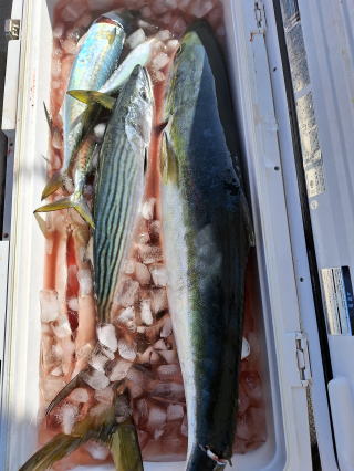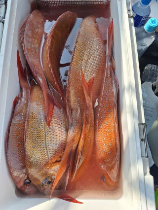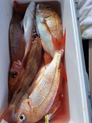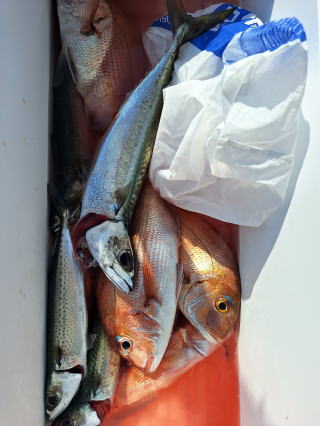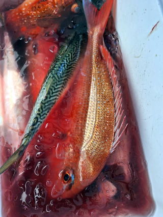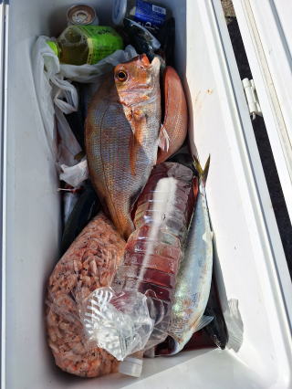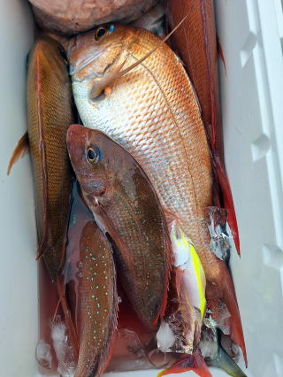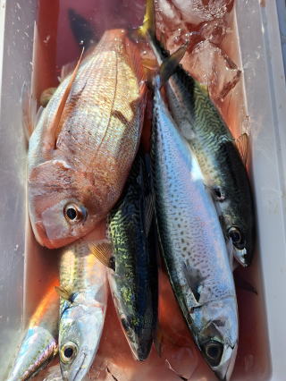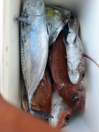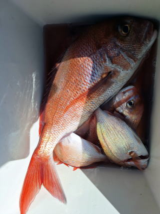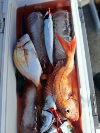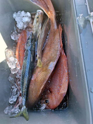 | 2025/12/05落とし込み 10時を過ぎたら風がでます。それでも良かったら 出します。と、いう事でいざ出港。釣ったアジを付け替え 放り込んでたら根がかりか?と言う今隈氏、しかし、何か おかしいと思い道糸を引っ張ると上がってくるから、”これ 魚がついてるよ”と上げてみたら立派なアラでした。 そうこうしてるうち風が強くなり納竿でした。 重たそうな今隈氏 ![]() :::::::::::::::::::::::::::::::::::::::::::::::::::::::::::::::::::::::::: 2025/12/01 いつものポイントが最近サバフグが多いものですから コマセマダイもポイントを変えてみました。しかし、 ここも仕掛けが高切れしたりして即退散。マダイ1匹 でした。根占沖で仕切り直し。だけど、ここも反応なし。 落とし込みにチェンジ。途端に忙しくなり、ネイゴに、 ブリ、ヨコワにデカアラカブ。アジにサバ。小さいクーラー の人はブリなど折り曲げて入れてました。 皆さん、もうクーラーに入らないから上がりますと。 ネイゴにブリ、もうクーラー一杯 ![]() ワラサ2本にヨコワの岩月氏 ![]() ブリに念願のサバにご満悦 ![]() ヨコワ、リリースされました。 ![]() ![]() 忘れものです ![]() ::::::::::::::::::::::::::::::::::::::::::::::::::::::::::::::: 2025/11/30五目~マダイ 11月最後の日、若潮。潮の所為にはしたくないが ここの所ずっと成績が思わしくない。今日もマダイは 数えるほど。仕方なく五目に。しかし、これも 当たりが悪い。ベイトが中々付かない内一人だけ 気を吐く立元氏、ネイゴにブリ2本にと。そして 小緑氏は魚は.釣れず自分の指を。返し迄入って しまい船上で手術。幸いに整形外科の先生の出番。 散々な1日になりました。次回のリベンジを。 唯一のマダイをゲット。 ![]() 光川氏、良型のアマダイを ![]() 私が手術してあげました。 ![]() ![]() ちょっと寂しいかな ![]() ![]() :::::::::::::::::::::::::::::::::::::::::::::::::::::::::::::::::::::::::::::::::::::::::::::::::::::::::::::::::::::::::::::::::::::::: 2025/11/29落とし込み 最近マダイの調子が思わしくないので今日はいつもの ポイントで落とし込み釣りをしようと向かったら先客が。 いつもは指宿沖から山川方面で釣りをしている船でした。 湾口が芳しくないのかな?なァ~んて思ったりして でも、落とし込みはベイトさえついてくれれば面白い様に 釣れる。しかし、ブリばかり。いい加減にしてくれと 言わんばかりに、仕掛けをマダイに変えたら直ぐヨコワが 落ち着いたところでオオモンハタ狙いに1時間のあいだに 良型が2本もきてくれました ハガツオが2本も ![]() 8㌔はあろうか ![]() 美味しそうですね。 ![]() 嬉しい外道が ![]() 家にも来てくれましたと大平氏 ![]() ![]() ![]() ![]() ![]() 2025/11/23五目釣り 丁度良いくらいの湯かげんで、風呂に入りたくなりそう。 こんな水温で獲物が釣れるのか?・・・お陰様で サバを狙えば良型のデカサバはいくらでも釣れる。 今日もチョロで他の獲物を狙ってたらそばに来てからヨコワと 分かり慌てたが、マダイ狙いの仕掛けとお祀りで後の祭り 悔しい1匹でした。釣果的にはマダイ2枚、サバどっさい 湾奥も芳しくないと言うが、いつ正常に帰るか。 佐多方面にジギングに行ってみたいなァー乞う希望者 ヨコワを逃がし意気消沈の・・・ ![]() ![]() ![]() :::::::::::::::::::::::::::::::::::::::::::::::::::::::::::::::::::::::::: 2025/11/22 最近ちょっとマダイの調子が悪いから今日は青物狙い からスタートでした。満ち潮でアジがあたり、下げ潮で サバを狙いながら何かヨコワとか、ハガツオとか、 マダイとか来ないかな~、なんて想いながら釣ってたら 良型のヨコワが当たってくれました。良型のサバなど 50本程でマダイのポイントに移動。しかし、小粒の マダイが3枚だけでした。ま、こういうこともあるさ と、言いつつ納竿。次回にリベンジに。 西村氏、良型のヨコワ ![]() アジ、サバ、マダイ、カツオ、 他、諸々皆で6目ダーと ![]() ![]() ![]() 番外編 ![]() 2025/11/17 サバが欲しい言う希望から、先ずはポイントに。 サバは当たれば大きいし、星カツオも漣ちゃんで。 サバ釣りも落ち着きマダイのポイントに。しかし、 あたりがポツポツで急に静かな雰囲気に。それでも 12~13枚程釣りあげクーラーも結構満杯状態に。 1時過ぎに納竿。帰港しました。 ![]() ![]() ![]() ![]() ![]() :::::::::::::::::::::::::::::::::::::::::::::::::::::::::::::::::::::::::::: 2025/11/16コマセマダイ 前日があまり釣れなかったからと意気込んで出た徳田氏 しかし、現実はそうは甘くない。釣れない時はやっぱり 釣れない。しかし、去年は今頃はジャンジャン釣れてたのに ま、そういう時もありますでしょう。マダイは3人で10枚程。 他はサバにヒラアジにと意気込んでた割には釣果には 恵まれませんでした。乞うリベンジを。 ![]() ![]() ![]() ![]() :::::::::::::::::::::::::::::::::::::::::::::::::::::::::::::::::::::::::::::::::::::::::::::::::::::::::::::::::::::::::::::::::::::::::: 2025/11/15落とし込み~コマセマダイ 落とし込みで大曾根まで走りましたが若潮のせいか ベイトがつかず不発に終わりました。諦めてマダイに。 しかし、マダ